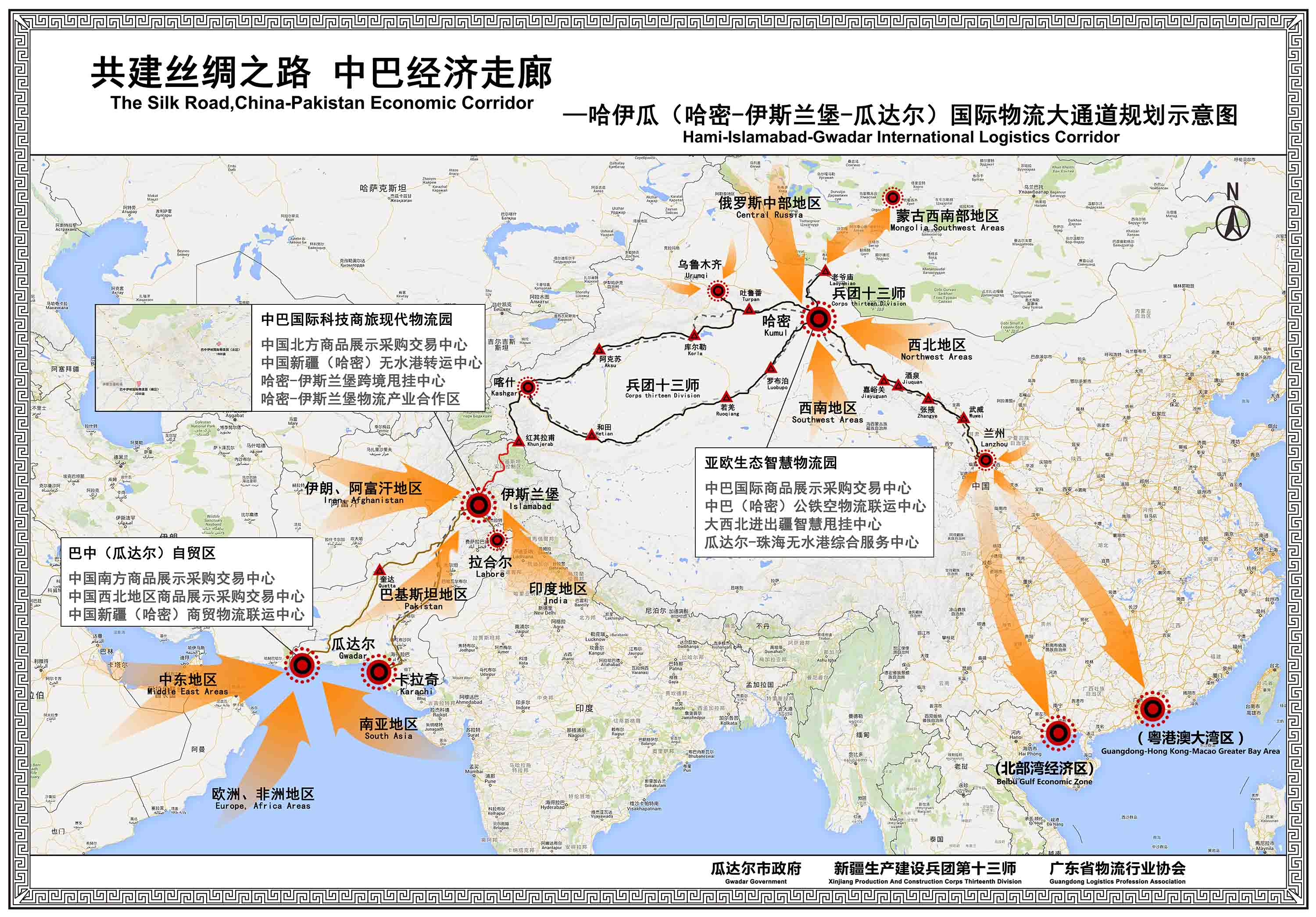 • 共建絲綢之路 中巴經(jīng)濟(jì)走廊-哈伊瓜國(guó)際物流大通道規(guī)劃示意圖